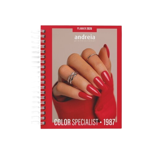 O design reflete a essência da Andreia Professional: moderno, feminino e sofisticado. A capa, marcada pelo tom vermelho icónico das unhas Andreia, transmite atitude e confiança. Ideal para quem procura uma ferramenta prática, bonita e funcional para organizar compromissos, acompanhar objetivos e manter a motivação ao longo do ano.