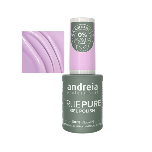 TRUE PURE VERNIZ GEL ANDREIA, SEM ODOR, SEM SOLVENTES, ULTRA PIGMENTADO E DURAÇÃO 3 SEMANAS. Esta nova gama de verniz gel foi especialmente pensada para as unhas e as peles mais sensíveis e cuidadosamente formulada para uma experiência suave e com menor probabilidade de irritações.