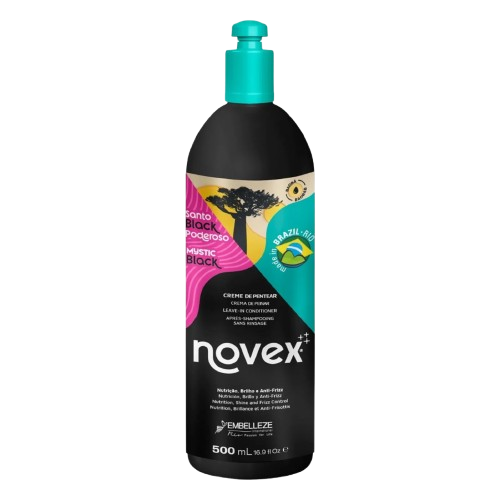 O Creme de Pentear Novex Santo Black Poderoso é ideal para finalizàs dos cuidados capilares, proporcionando cabelos muito mais hidratados e suaves graças ao poderoso óleo de Baobá. também serve para desembaraçar os fios de cabelo. Apresenta uma fórmula livre de parabenos, petrolatos, silicones e sulfatos.