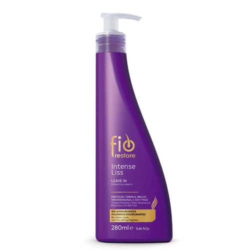 Fio Restore Leave in Intense Liss 280ml-A linha FIO RESTORE INTENSE LISS garante um efeito liso natural através da ação dos polímeros disciplinantes, além de promover a recuperação dos fios de dentro para fora através do preenchimento da cutícula pela ação efetiva dos aminoácidos. Além desses benefícios, a fórmula garante proteção térmica, brilho, elimina o frizz e pontas duplas.