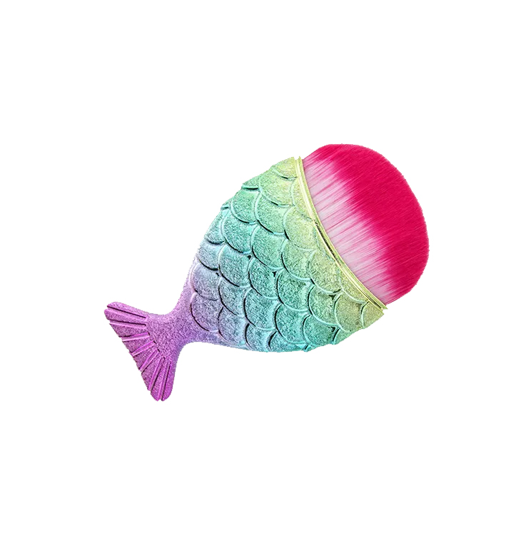 Uma escova de pó com design de sereia chique e cerdas longas e macias é uma ferramenta essencial no salão de beleza.