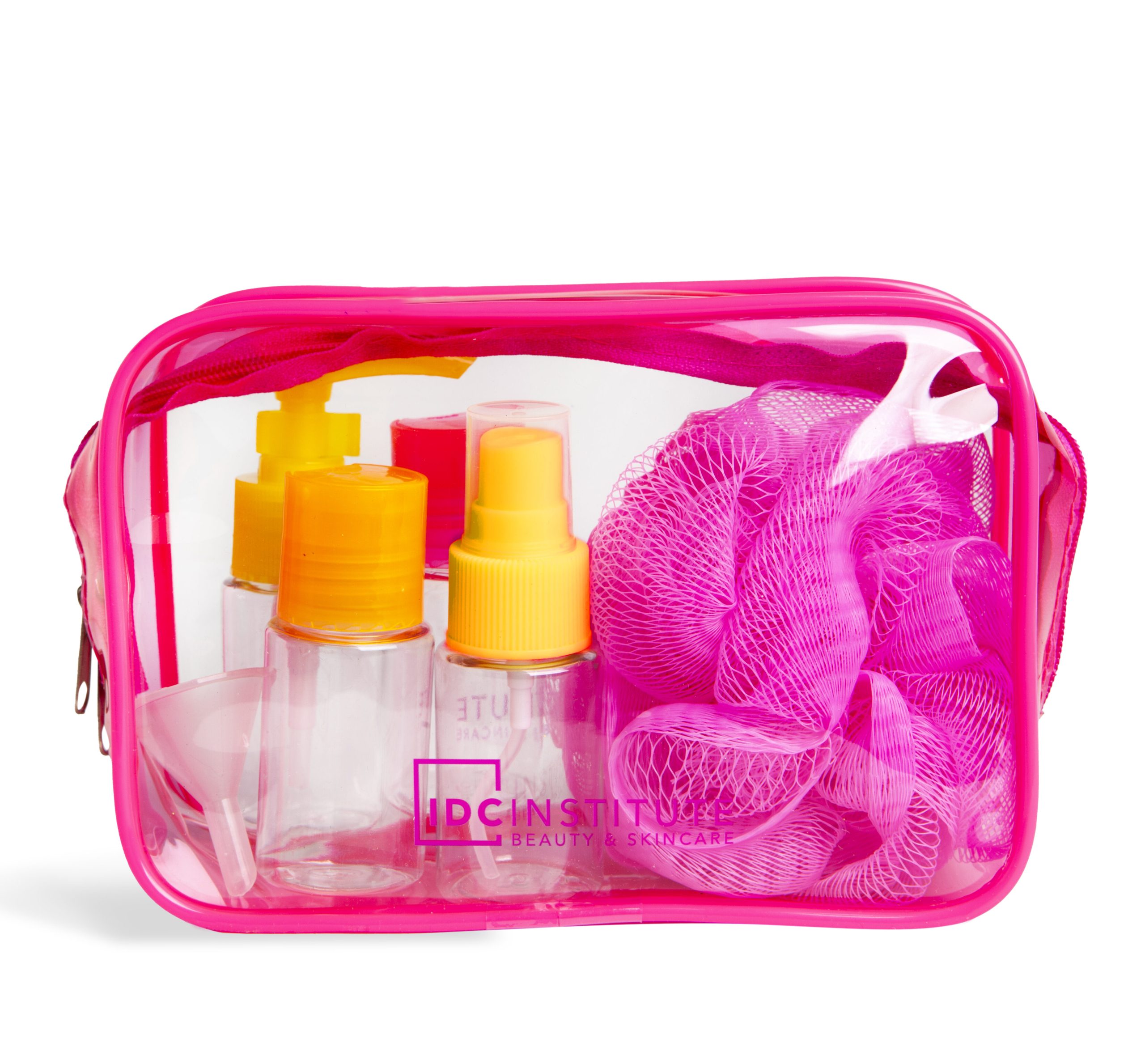 O conjunto de viagem neon é perfeito para quem viaja e leva muito a sério os cuidados pessoais. Leve de casa os seus produtos essenciais e complete a sua rotina de beleza como faz em casa. Contém 4 frascos, uma esponja de malha e um funil para transferir os seus produtos preferidos sem desperdiçar uma gota.