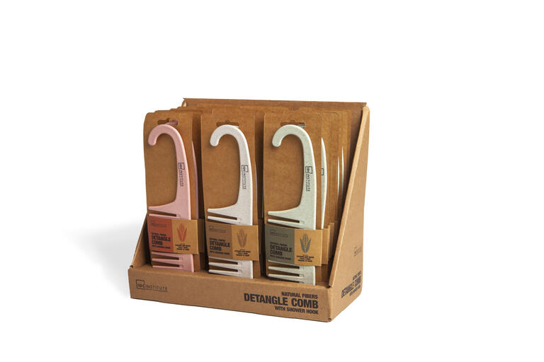 Este é o pente perfeito para o duche, não só pelas suas largas pontas de fibra natural, mas também pelo seu formato arredondado que permite pendurá-lo onde quiser.