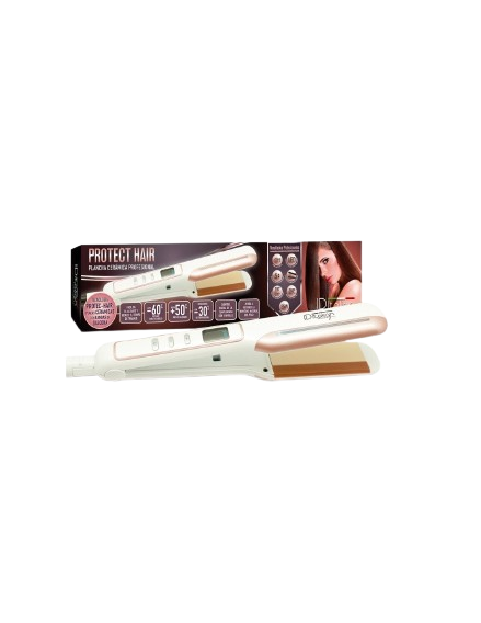 Placa para uso profissional com placas cerâmicas, display digital retroiluminado e seletor de temperatura (140-220º).