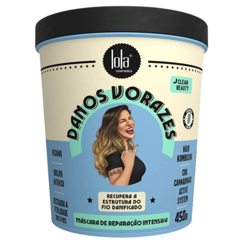 Lola Máscara Danos Vorazes de Reparação Intensiva para reparação imediata da fibra extremamente danificada. Fórmula rica em complexo probiótico que recupera os danos dos cabelos que passaram por químicas, devolvendo a vitalidade e saúde dos fios. Sem Glúten, Sulfatos, Ftalatos, Corantes Sintéticos, Cloreto de Sódio, Parabenos, Óleo mineral, Parafina e Derivados de animais.