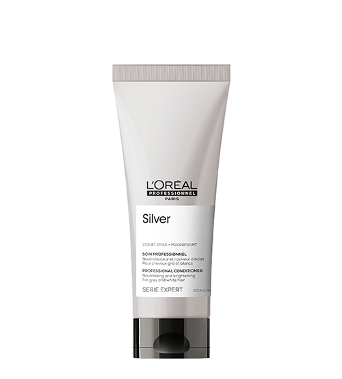 Condicionador Profissional neutralizador e iluminador para cabelo grisalho e branco. Fórmula enriquecida com pigmentos violeta e Magnésio*. Uma combinação de agentes contra o amarelecimento para neutralizar os tons amarelos indesejados e deixar o cabelo suave e brilhante. *Acetato de Magnésio.