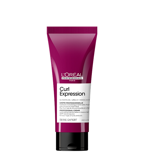 O Curl Expression Creme Hidratante de longa duração protege o cabelo do calor, até 230 °C/450 F, com uma fórmula rica que se mantém no cabelo sem pesar, como um PRO.
