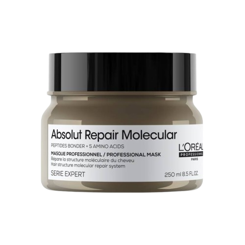 [DESCOBERTA CIENTÃFICA – REPARAÇÃO MOLECULAR] Quando o cabelo se danifica, a sua estrutura molecular composta por péptidos, é comprometida. A maioria dos péptidos são demasiado grandes para que sejam reinjetados na fibra novamente, tornando o dano quase irreversível. Os nossos investigadores encontraram a solução decompondo os péptidos. Ao injetar os seus componentes separadamente na fibra** é possível reconstruir a estrutura molecular do cabelo***. Absolut Repair Molecular repara 2 anos de danos, em apenas 1 utilização*.