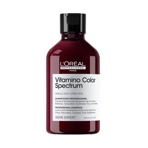 Descubra o novo Shampoo Vitamino Color Spectrum de L’Oréal Professionnel. Este shampoo profissional é formulado para proteger e preservar a cor do cabelo com coloração. Uma fórmula com ácido ferúlico e ácido cítrico que permite manter a cor vibrante até 100 dias*. Além disso, a sua textura cremosa limpa a fibra deixando o cabelo nutrido e mais forte. Ideal para todos os tipos de cabelo com coloração.