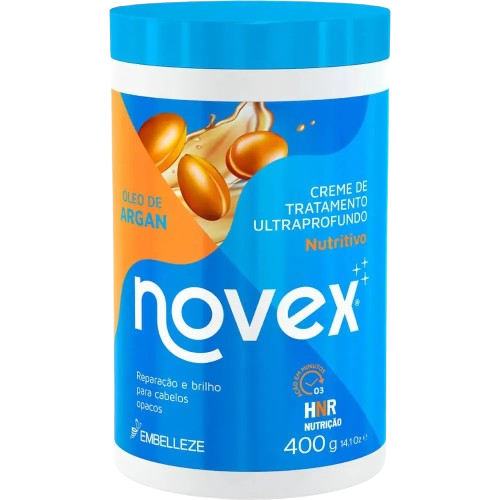 Enriquecida com puro óleo de Argan e Vitamina E, a Máscara Novex óleo de Argan estão indicada para cabelos secos, com frizz, pontas dupla e sem brilho. A sua fórmula à base de óleo de Argan, combate os radicais livres e repara profundamente a fibra capilar.
