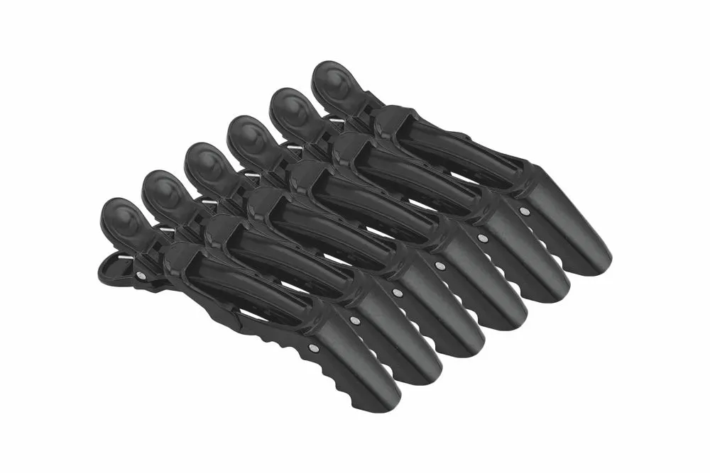 Pinça de cor preta, muito útil para prender o cabelo. Vendido em embalagens de 6 unidades.