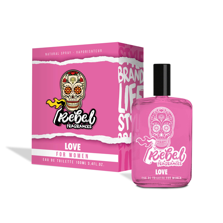 Rebel Love for Women é uma fragrância delicada, feminina e romântica. Começa com acordes de bergamota, groselha negra e pêra, evoluindo para um coração quente e cremoso de jasmim, flor de laranjeira e íris. No fundo, toques de sândalo, baunilha e fava tonka completam um conjunto sereno e belo, ideal para todas as ocasiões.