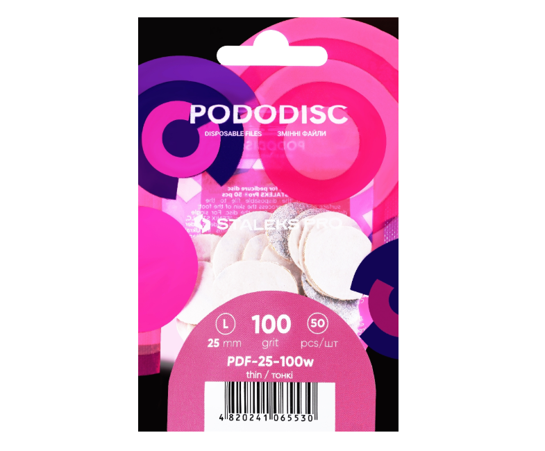 - Almofadas de reposição para o disco de pedicure Pododisc, tamanho L, branco, são uma ferramenta indispensável para o especialista profissional em pedicure. Estes produtos proporcionam uma limpeza e polimento eficaz da pele dos pés, prevenindo lesões.As almofadas possuem uma base auto-aderente fiável e apresentam um abrasivo uniforme com proteção especial contra poeira orgânica. São resistentes à humidade. Para uso único. Diâmetro de 25 mm.
